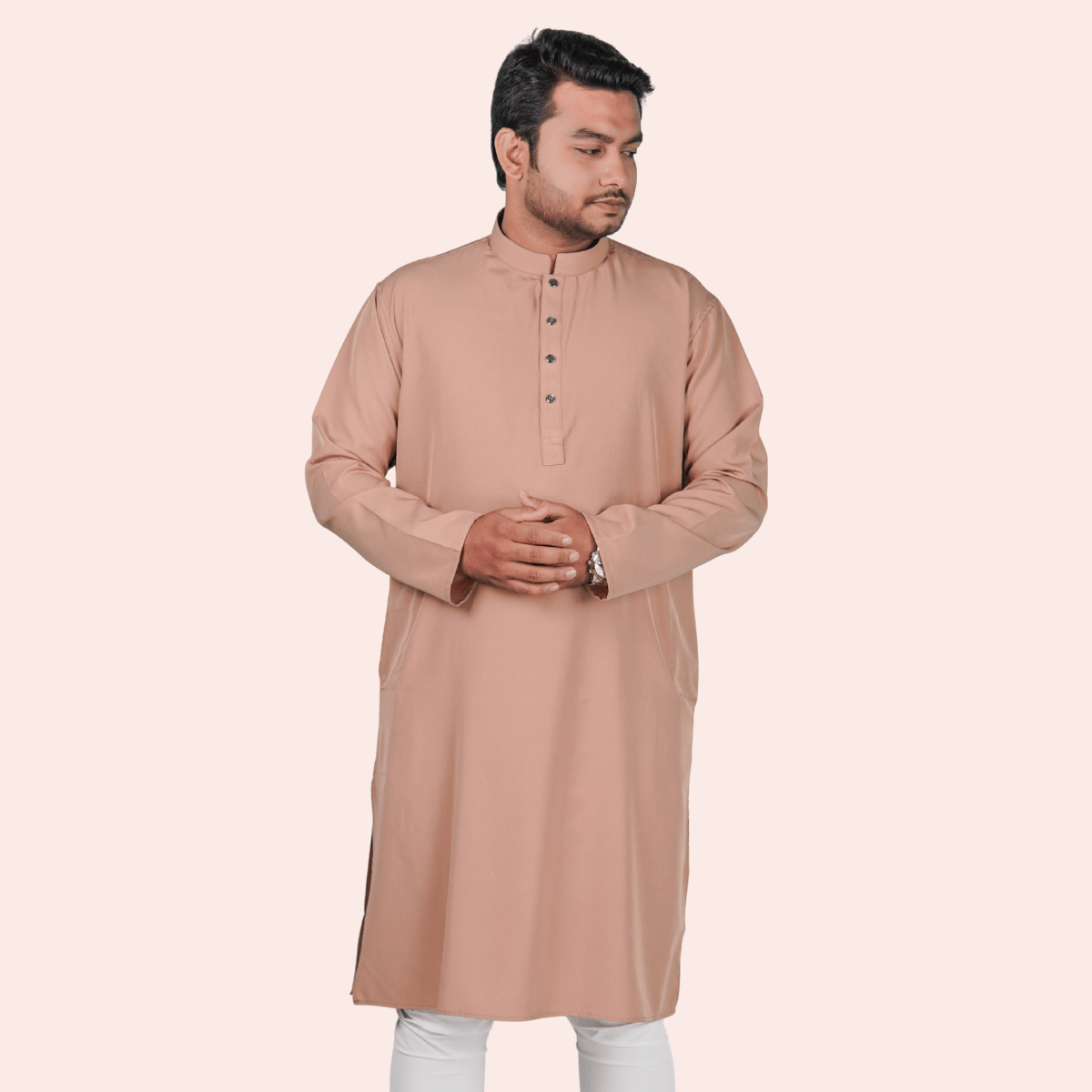 বিস্কুট কালার অরিজিনাল প্রিমিয়াম চায়না ফেব্রিকের সলিড পাঞ্জাবি