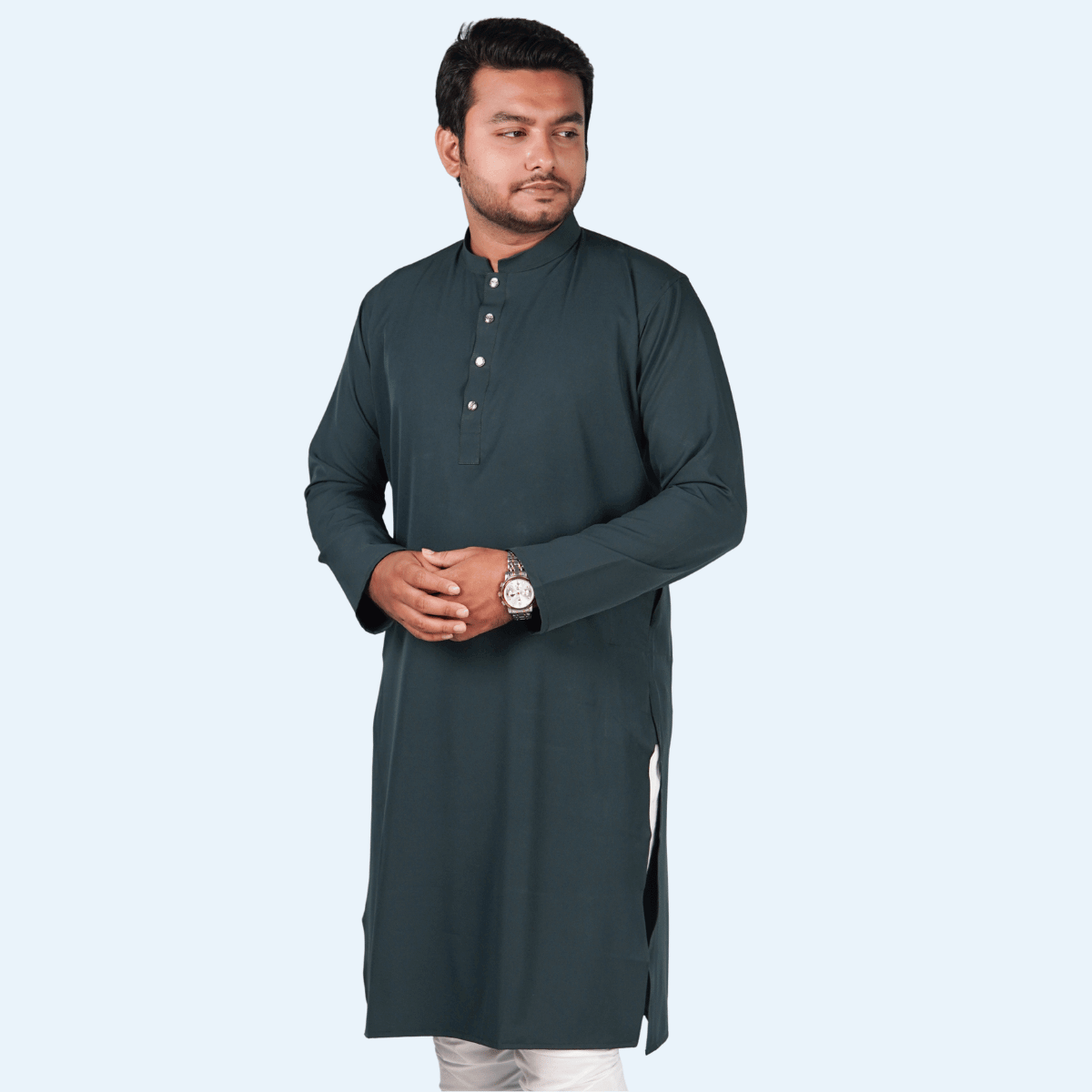 পেট্রোল ব্লু কালার অরিজিনাল প্রিমিয়াম চায়না ফেব্রিকের সলিড পাঞ্জাবি