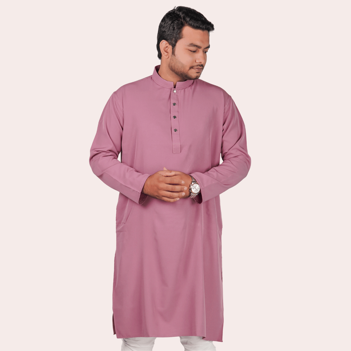 ডাস্টি পিংক কালার অরিজিনাল প্রিমিয়াম চায়না ফেব্রিকের সলিড পাঞ্জাবি