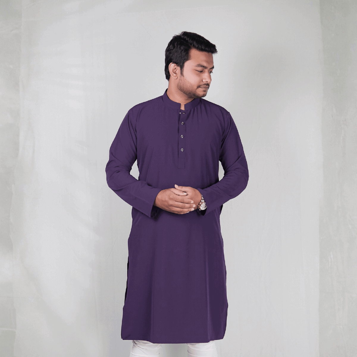 পার্পেল কালার অরিজিনাল প্রিমিয়াম চায়না ফেব্রিকের সলিড পাঞ্জাবি